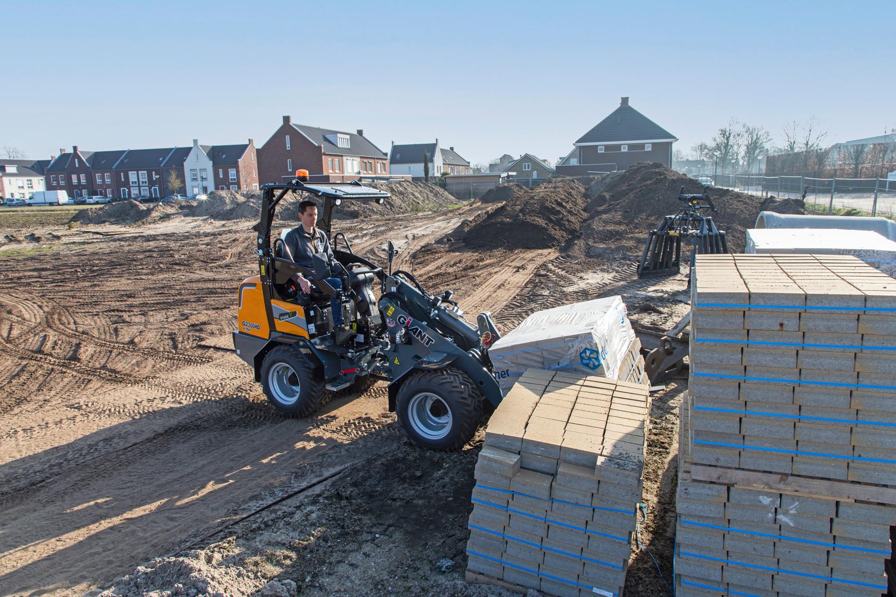 Bei Wohnbauprojekten bieten die elektrischen Kompaktlader und Verdichtungsgeräte von Giant eine emissionsfreie und umweltfreundliche Lösung.