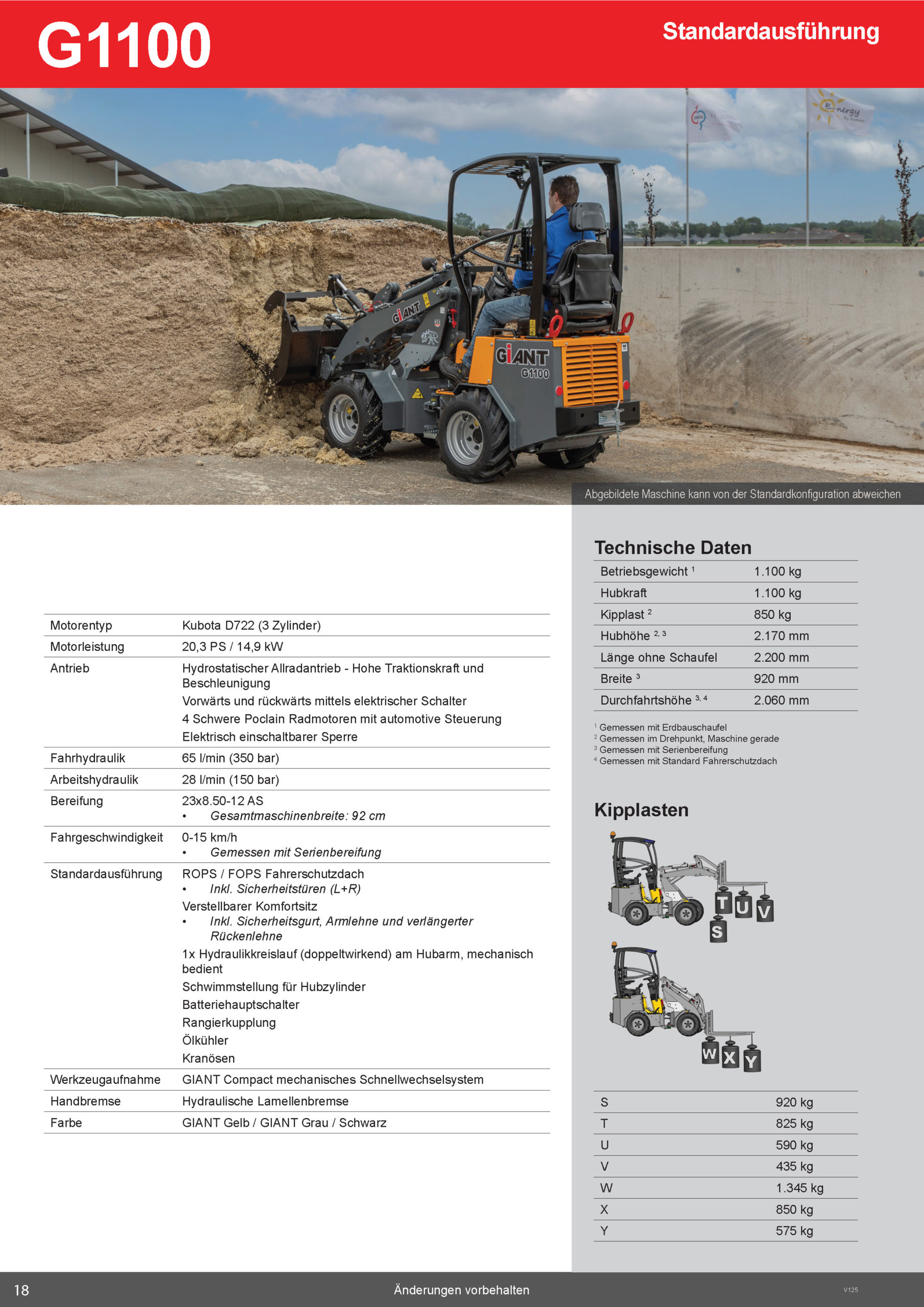 Betriebsgewicht (1): 1100 kg