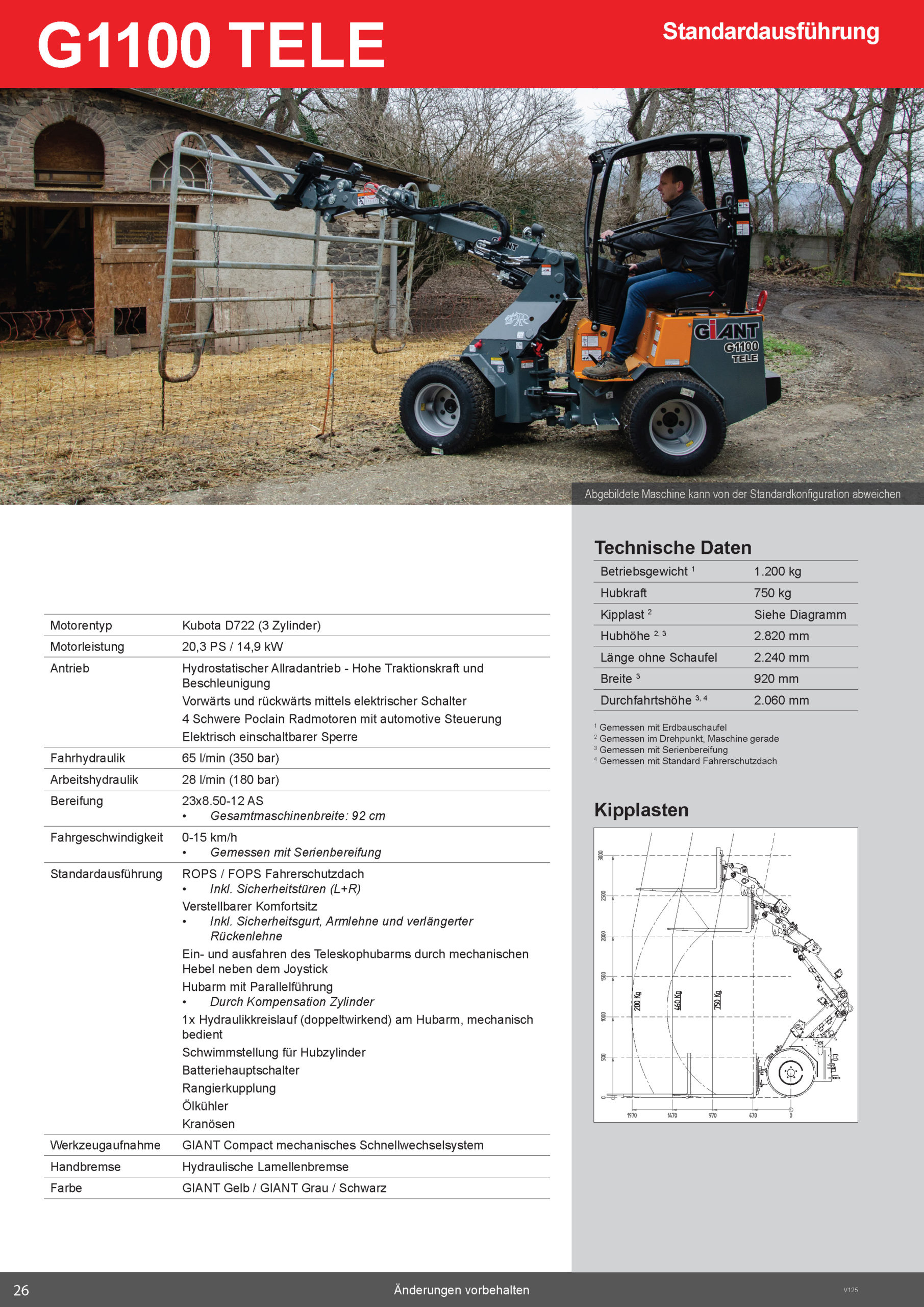 Betriebsgewicht (1): 1200 kg