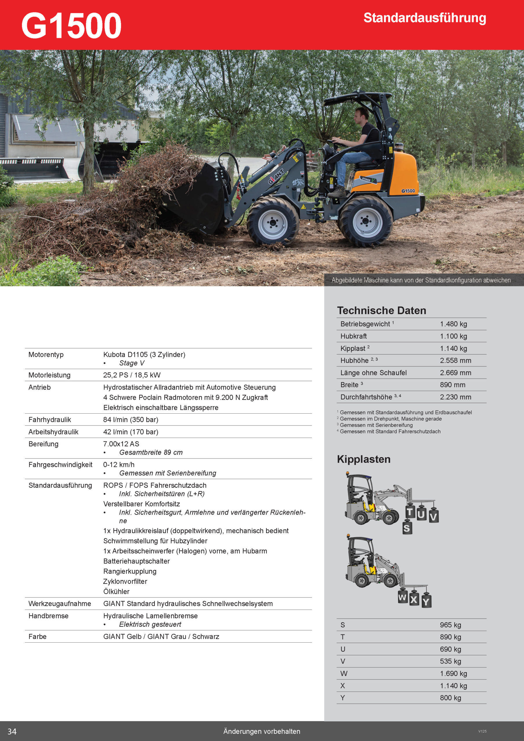 Diese multifunktionale Maschine wird aus hochwertigen Komponenten gefertigt und überzeugt durch ihre Wendigkeit. Dank ihres kompakten Designs lässt sich die G1500 problemlos auf einem Anhänger transportieren – eine praktische und leistungsstarke Lösung für den täglichen Einsatz.