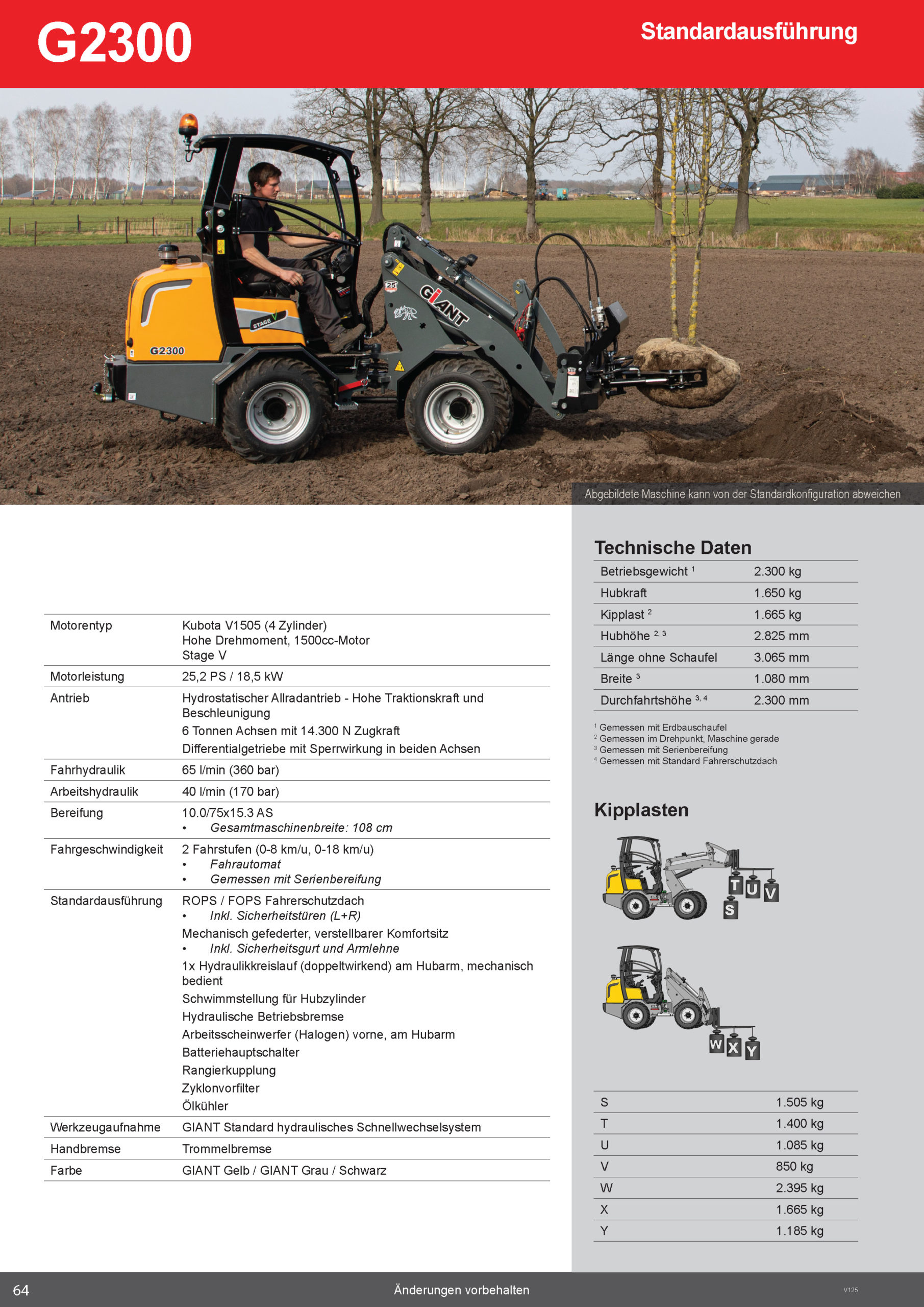 1,08 m und einer Höhe von 2,3 m – ist sie äußerst vielseitig einsetzbar. Das Sicherheitsdach, der komfortable gefederte Sitz und die Halogen-Arbeitsscheinwerfer sorgen für höchsten Komfort und maximale Sicherheit – bei jedem Einsatz.