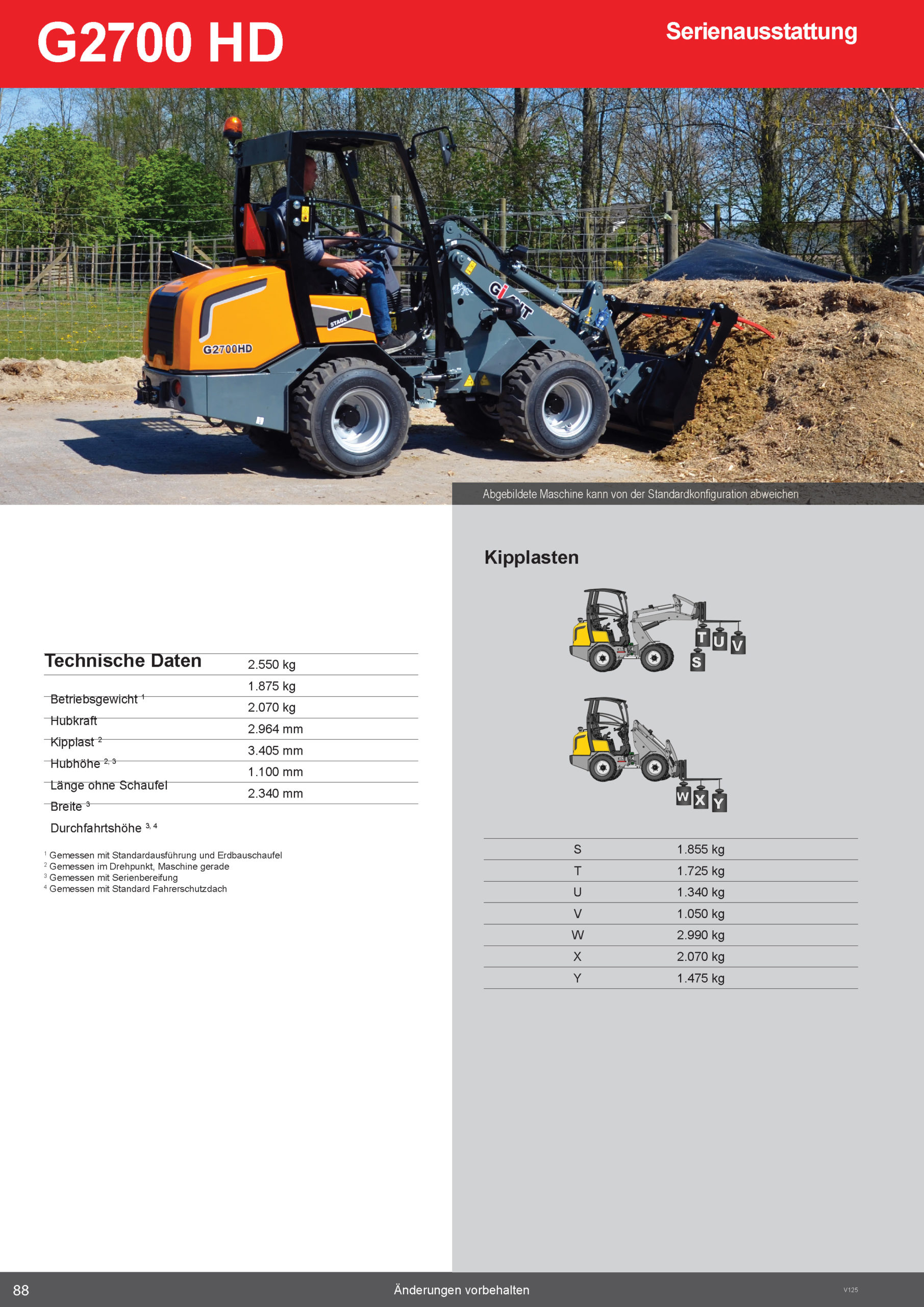 Als echtes Flaggschiff der TOBROCO-GIANT Produktpalette zählt der G2700 HD zu den meistverkauften Modellen. Vielseitig und zuverlässig ist er ein unverzichtbares Arbeitsgerät für den täglichen Einsatz auf Baustellen, im Landschaftsbau sowie in der Landwirtschaft.