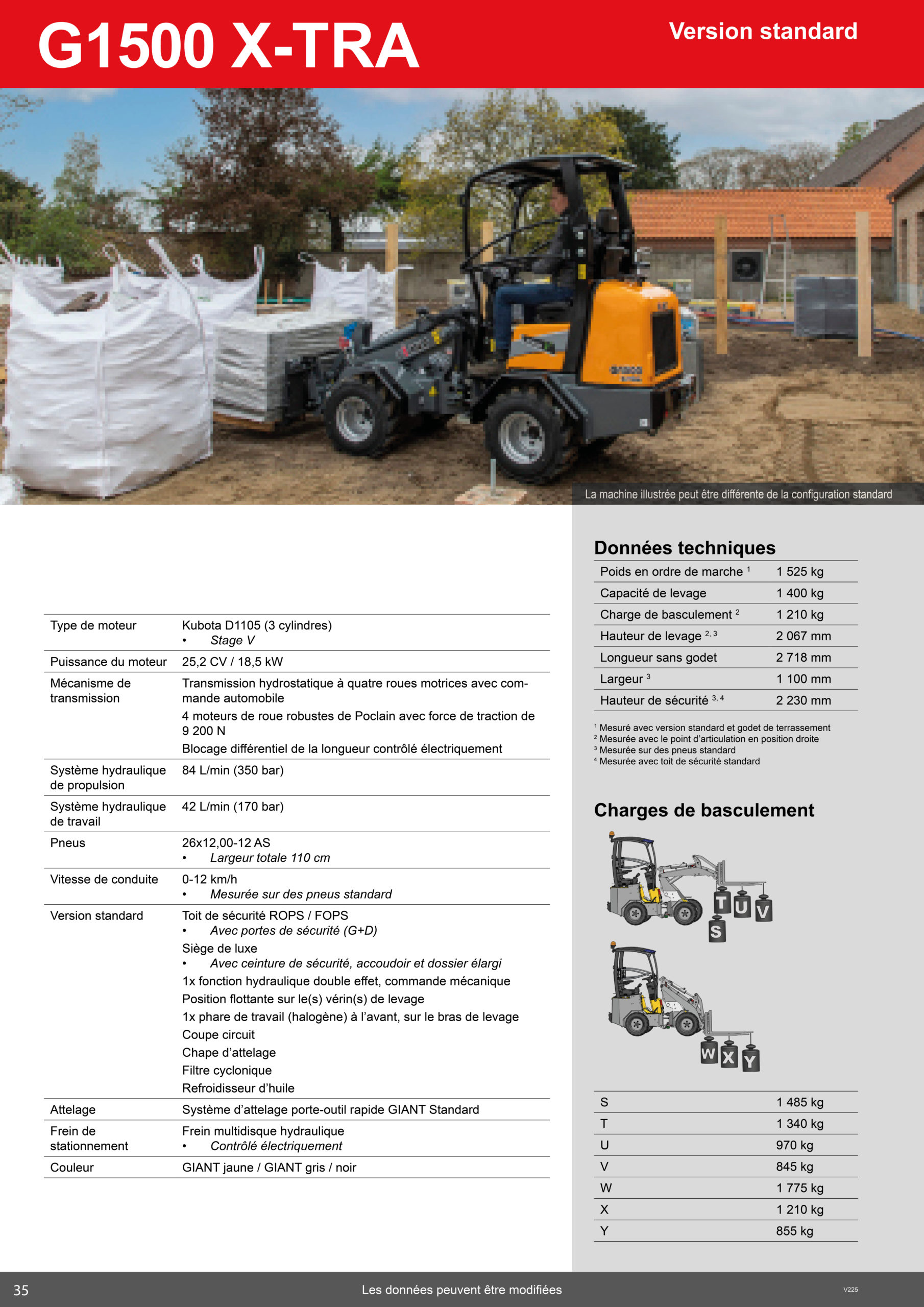 La version X-TRA du modèle G1500 offre un excellent compromis entre compacité et puissance. Avec son moteur vif et sa capacité de levage améliorée de 1400 kg, elle convient aussi bien aux professionnels du bâtiments qu’aux paysagistes.