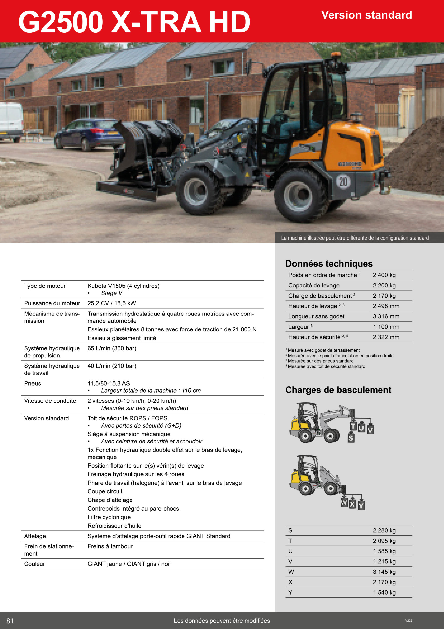 La version X-TRA du GIANT G2500 HD est équipée d’un châssis abaissé, lui permettant de soulever facilement jusqu’à 2 200 kg, avec une charge de basculement atteignant 2 170 kg.