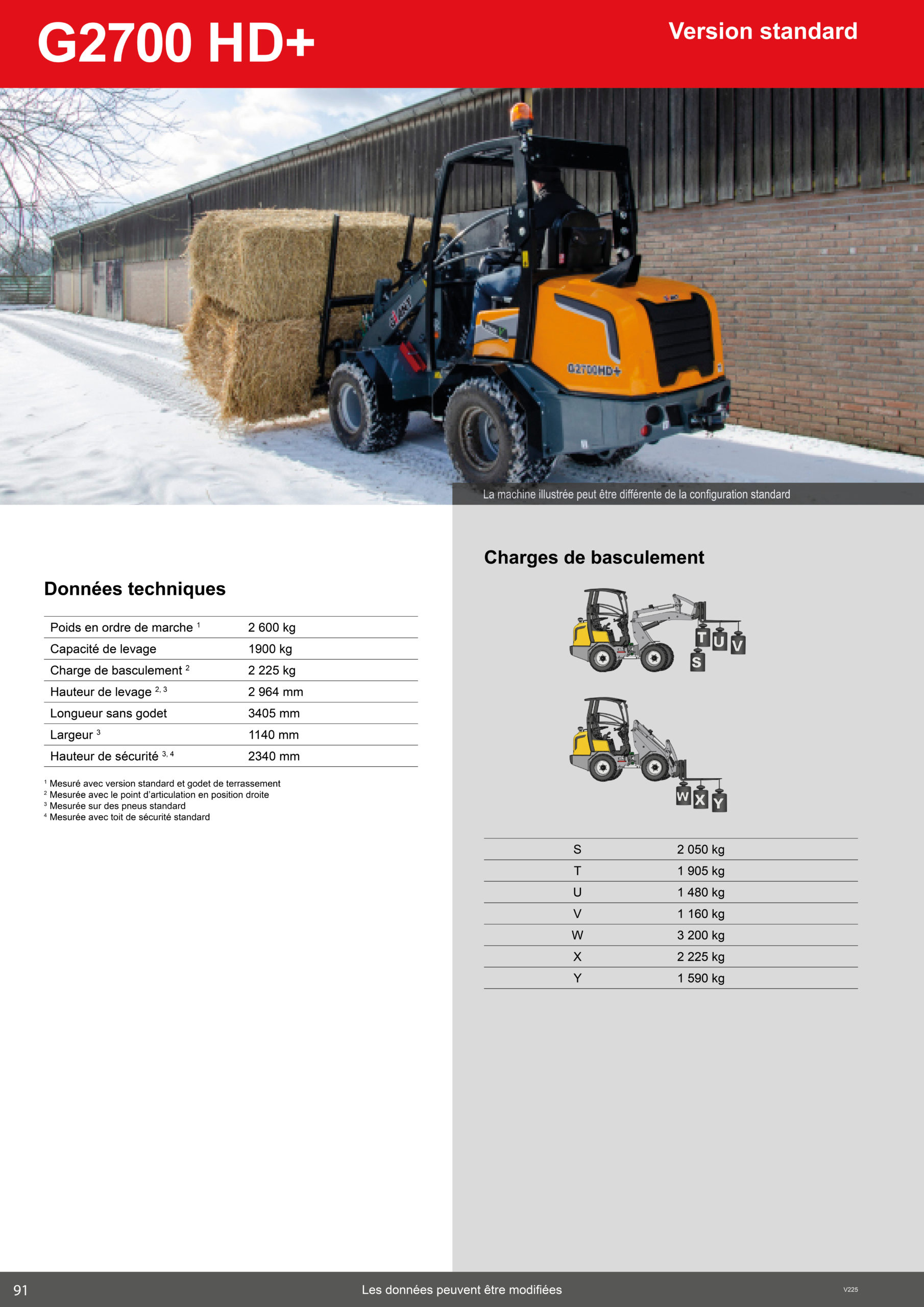 – Feux de travail (halogènes) à l’avant, sur le bras de levage