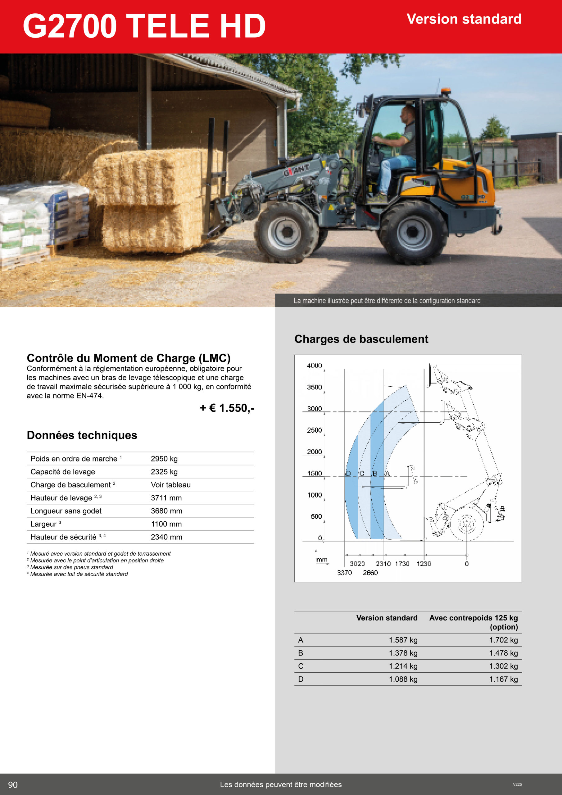 La G2700 TELE HD est propulsée par un moteur Kubota de 50,4 CV, offrant aux utilisateurs les avantages d’une conception compacte, à la fois éprouvée et appréciée.