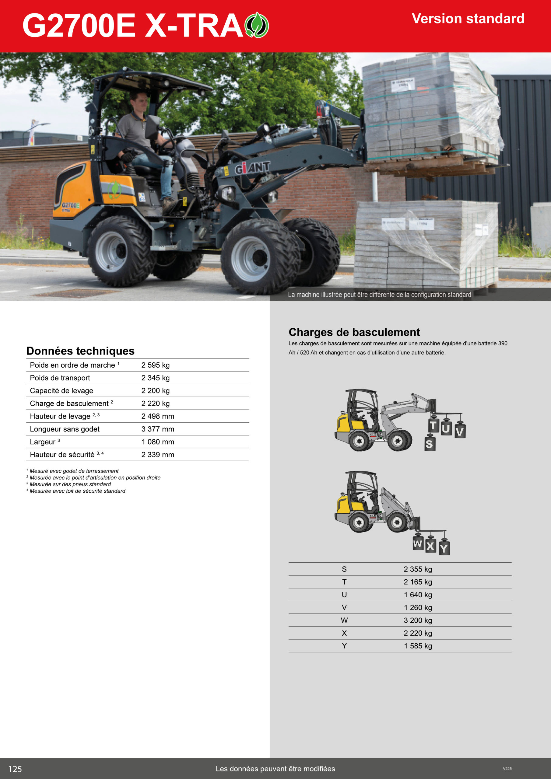 Charge de basculement (2) 2220 kg