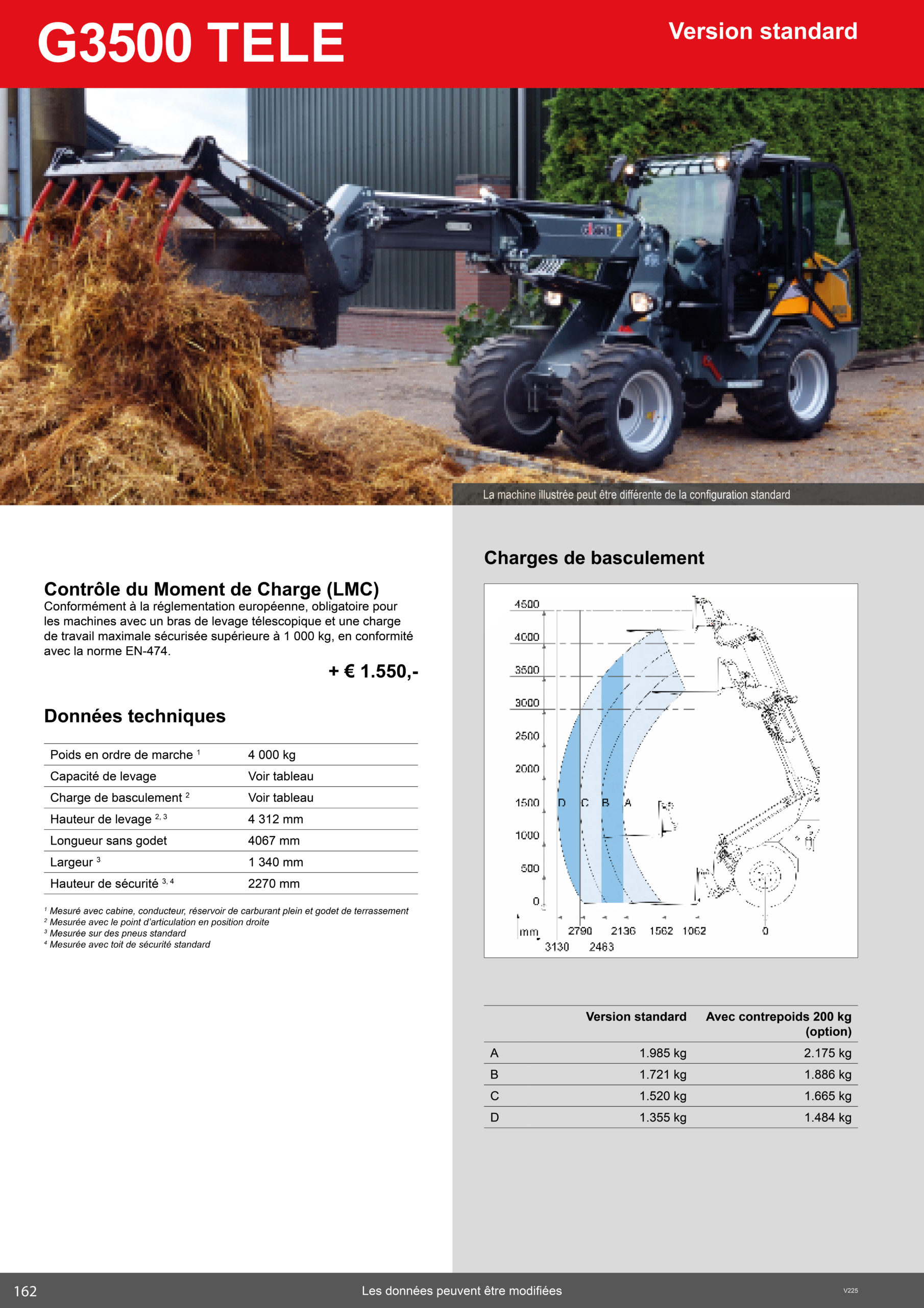 – Feux de travail (halogènes) à l’avant, sur le bras de levage