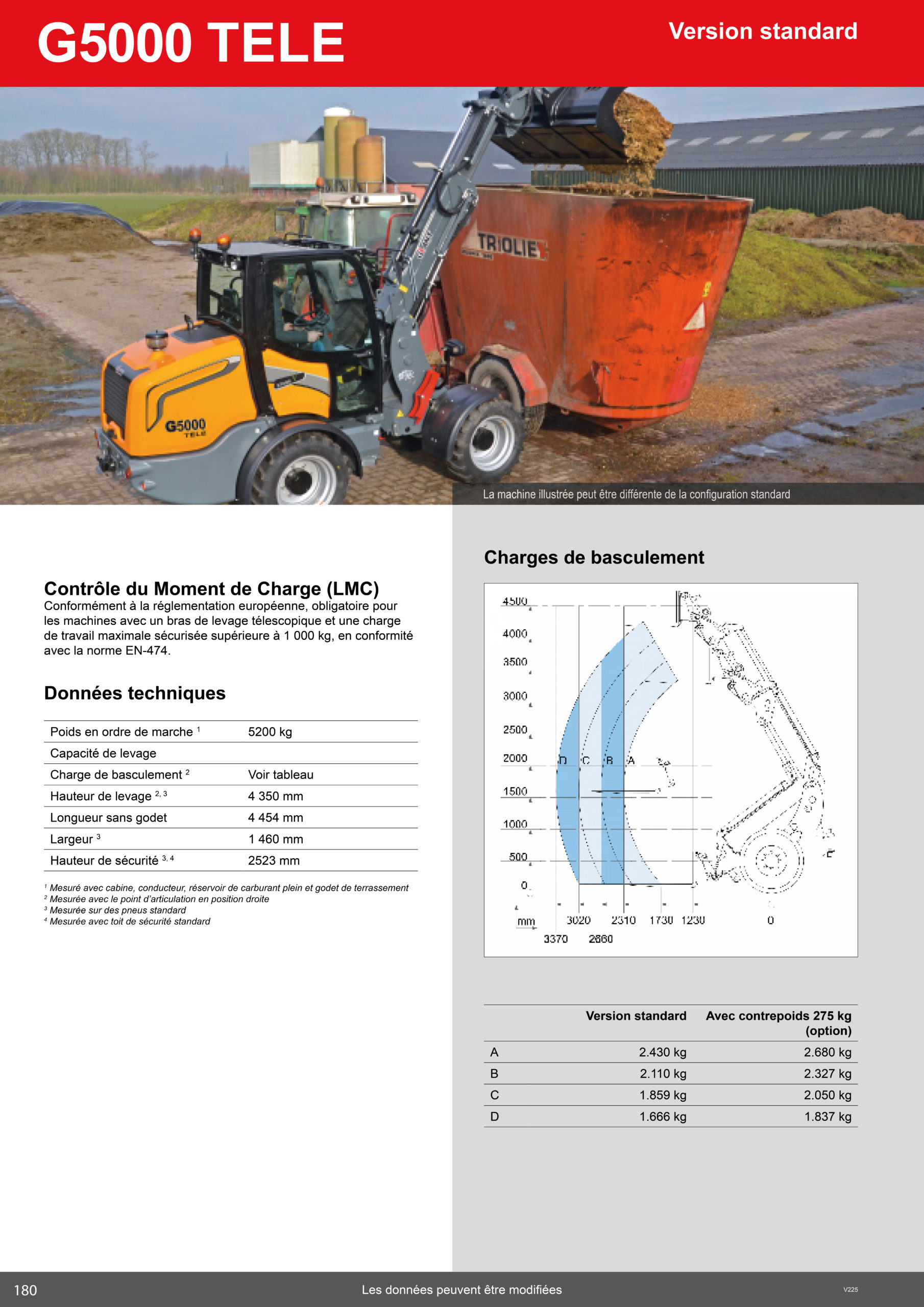 Poids en ordre de marche (1): 5200 kg